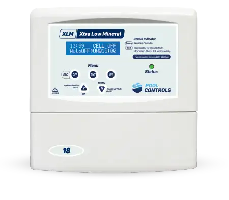 All XLM systems have a built-in “cover-mode”, which at the touch of a button, reduces chlorine output to 20% of normal for when a pool cover is on the pool.
